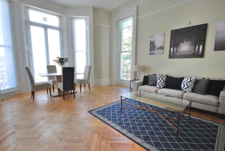 A delightful and exquisitely furnished one bedroom flat set on the first floor of this well maintained period building on a quiet street in South Kensington.