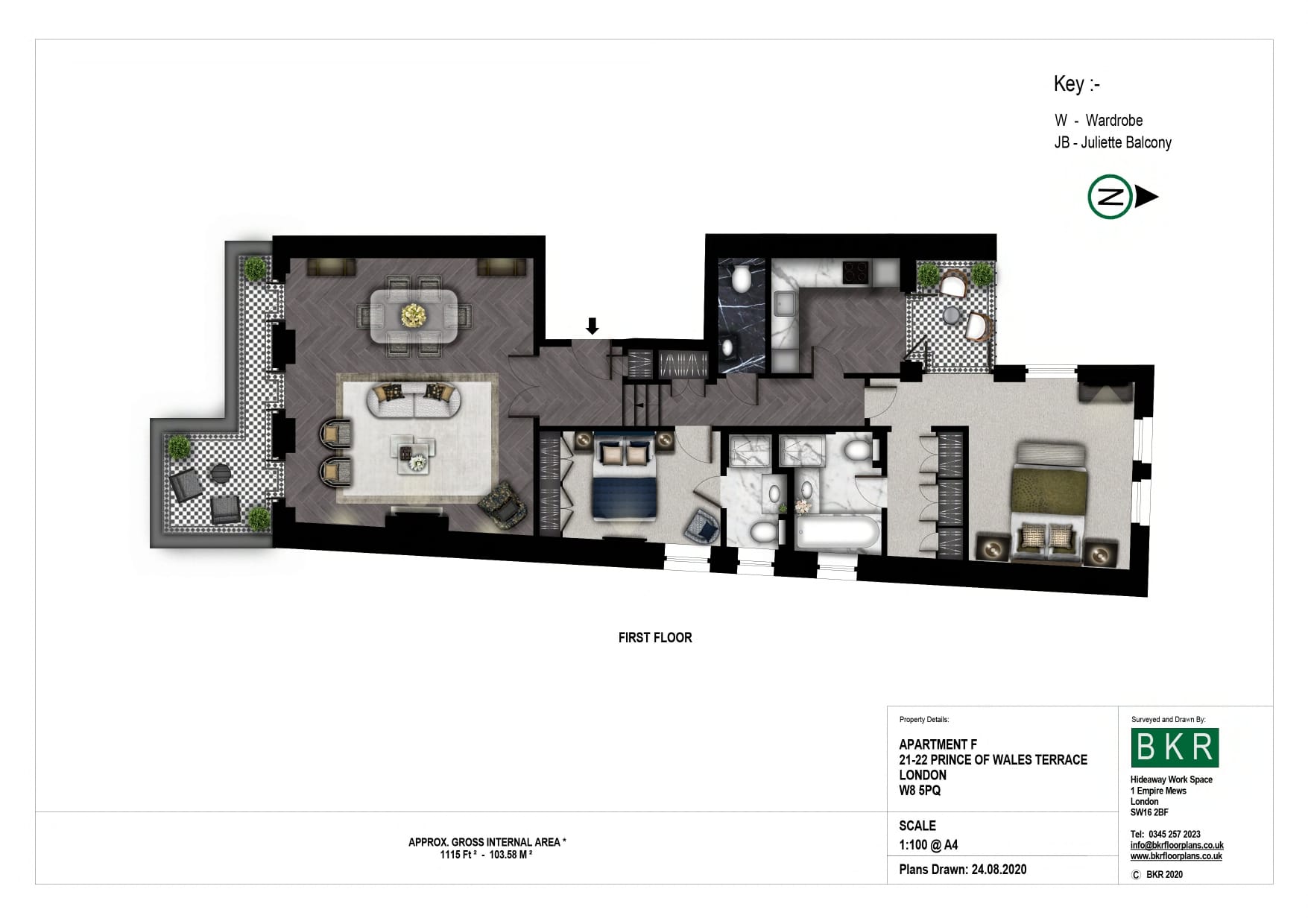 An exquisite two-bedroom apartment on the second floor of an elegant Stucco-fronted building with 1860s Victorian features. It comprises a beautiful modern kitchen with Tuscan Calacatta marble worktops and dark oak flooring, with French doors that lead out onto one of the charming private terraces. The other terrace is accessible via the living room and provides an excellent socialising space, with outdoor seating and views of the surrounding Kensington area. The two stylish double bedrooms are equipped with built-in wardrobes and ensuite marble bathrooms and there is even a luxurious dressing room within the master bedroom. The apartment has managed to retain its high ceilings, Victorian chequerboard tiling and bespoke furnishings whilst also receiving a contemporary uplift. On-street parking is available to residents, as well as an onsite building manager for maintenance and emergencies. It is located in the affluent area of Kensington, close to plenty of shops, restaurants and local amenities. The nearest tube stations are High Street Kensington (Circle and District lines) and Gloucester Road (Piccadilly, Circle and District lines), and it is moments away from the tranquil green spaces of Kensington Gardens and Hyde Park.